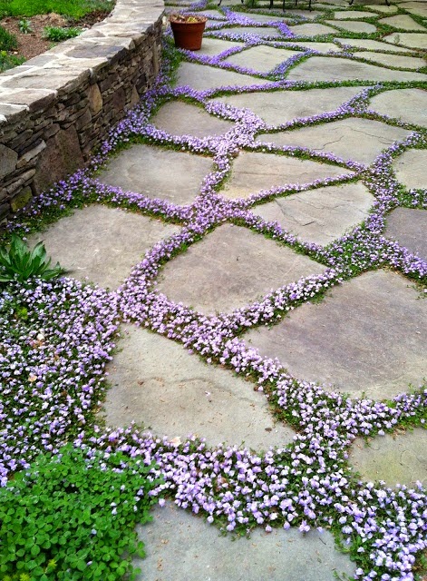 Pour terminer cet article, voici une petite précision. Je ne parlais que de terrasses et de ruelles « classiques ». Dans le cas des marches japonaises, il ne s’agit pas de joints qui se trouvent entre chaque étape, mais d’un espace considérable beaucoup moins restrictif qu’un joint, ce qui permet de créer un choix beaucoup plus large de plantes rampantes.
